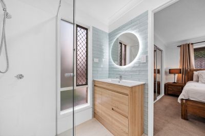 *Master bedroom with bank of modular built-in robes, A/C, ceiling fan plus ensuite with shower, exhaust fan and w/c.