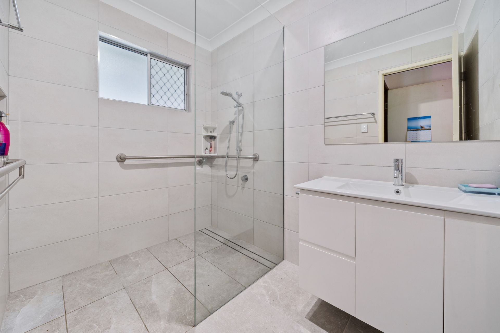 *Bathroom with shower, floor to ceiling tiles, heat and exhaust, renovated circa 2023