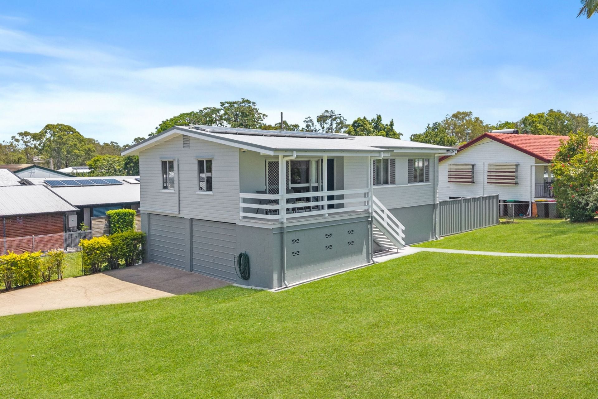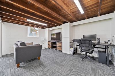 Downstairs, the fully enclosed lower level offers exceptional flexibility, featuring a double garage, workshop area, and additional multipurpose space (under 2.4m) currently enjoyed as a bar, lounge, and home office. A dedicated laundry completes this highly functional layout. And with 24 solar panels already installed, energy efficiency is built right in.